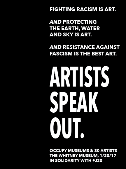 Artists Speak Out, a chronicle of artist statements from #J20. Printed Matter Press: New York. forthcoming 2017 (publication)