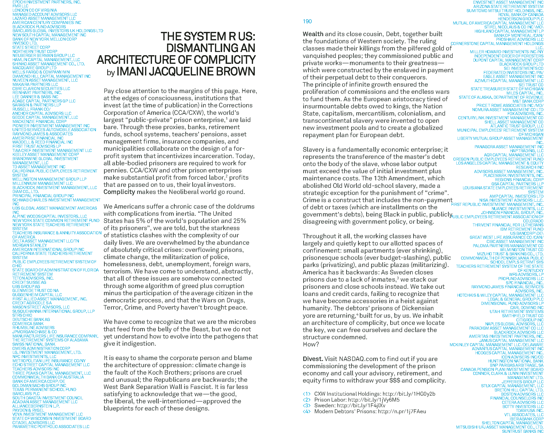 In 2015, IJB worked for artist jackie sumell to produce the concept and design and to manage the publication of the third edition of The House That Herman Built. The book design and organizing principles were anchored by the Black Panther Party 10-Point Plan.